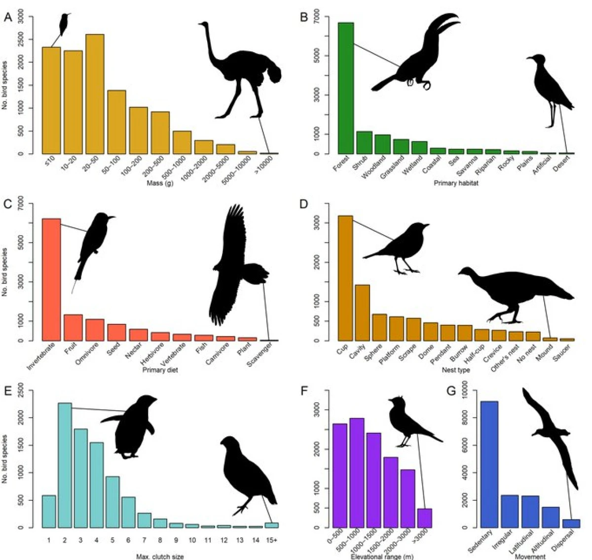 Dünya genelindeki 11 bin 589 kuş türüne ait 78 farklı özelliği içeren “BIRDBASE” adlı dev veri tabanını kamuya açıldı. Araştırmacıların çalışması, kuş ekolojisi ve koruma çalışmalarında yeni bir dönemin kapısını aralaması bekleniyor.